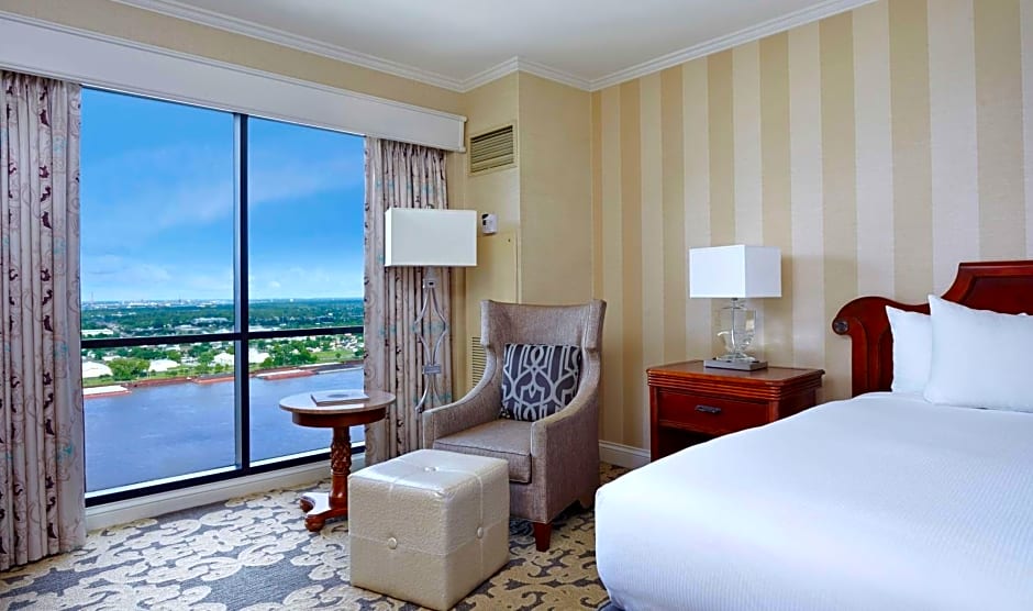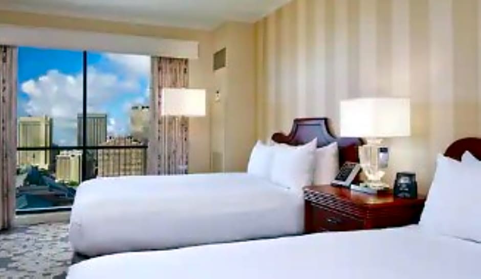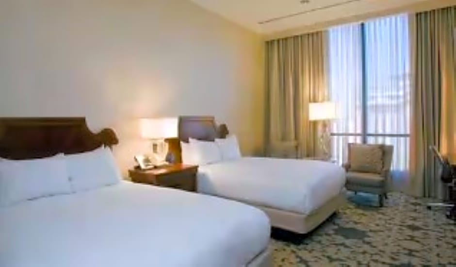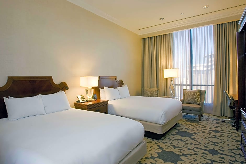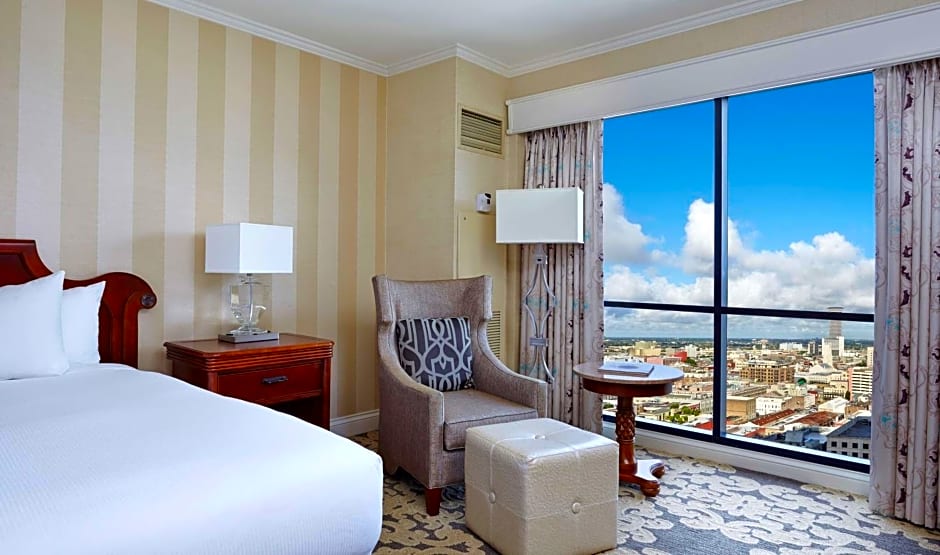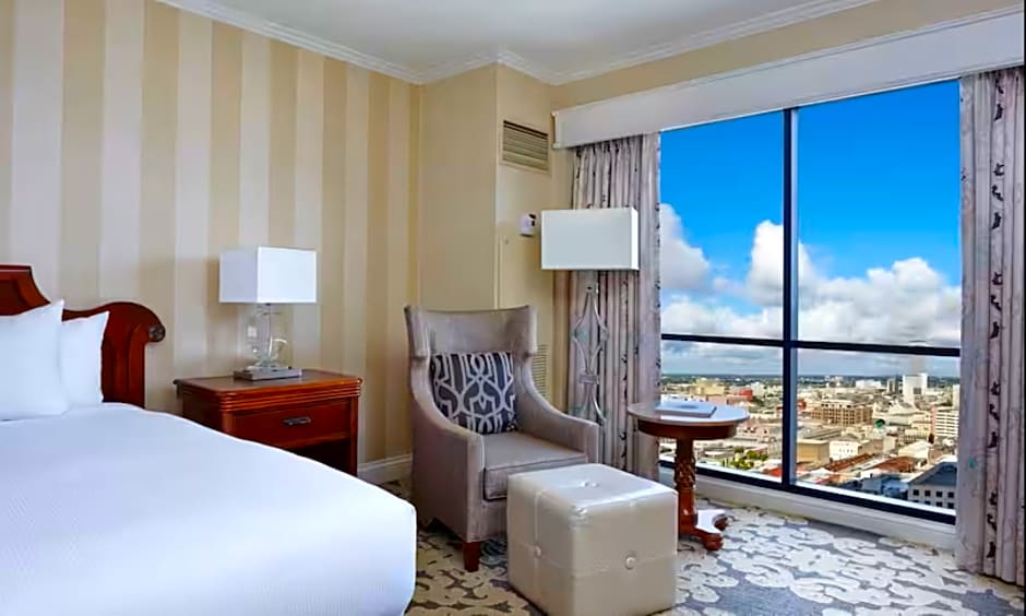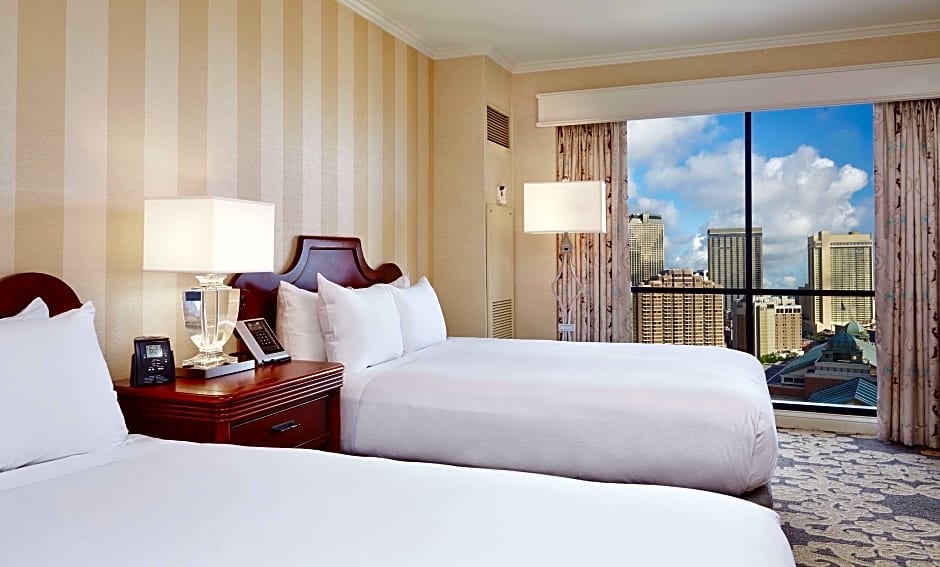 Views, highest floor, extra space, 37-inch LCD TV, mini-refrigerator Located on the highest floor offering great views of New Orleans, this Luxury Room with 2 queen-sized beds allows guests extra space to relax and spread out. Sleeps up to 4 adults. Other features include a 37-inch LCD TV, mini-refrigerator, a work desk and WiFi (standard WiFi is free for HHonors members).
