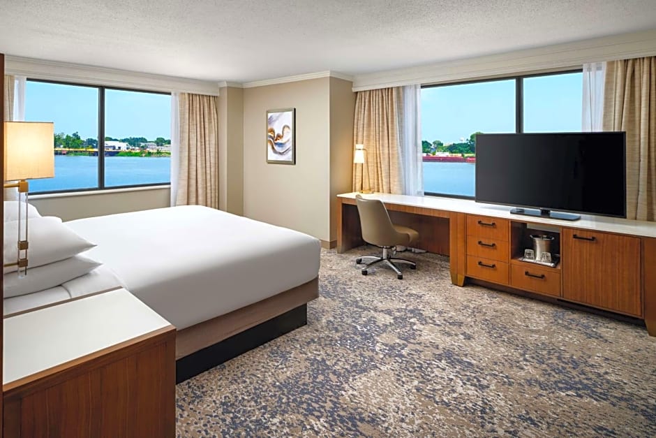 Riverfront 1 King Bed- Riverside Building is 301 square feet and includes a king-size bed 150-183 width and is Wheelchair-accessible.